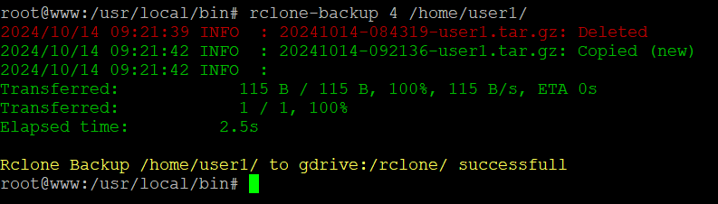 3. Jetzt wird die Datei /tmp/241014-102736-user1.tar.gz auf die Cloud kopiert.